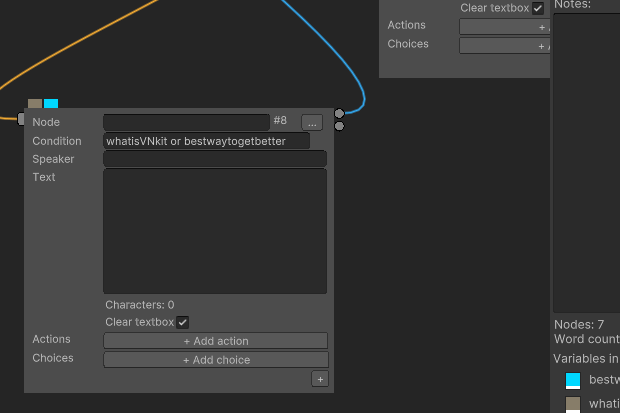 We have to say Value: AstraAffection+1 because VNKit needs to have perfectly unambiguous instructions on which numbers itās supposed to add together - if we instead just said Value: +1, it would create an error. What weāre trying to do is to add 1 to what the value was before, so we state it like this.